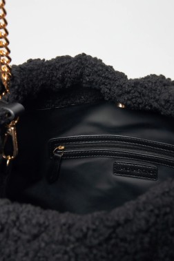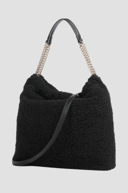 O geantă mare de la Valentino by Mario Valentino, realizată dintr-un material plăcut la atingere care imită blana de oaie. Geanta Hobo Qube este încăpătoare și moale, fundul său este căptușit. În interior există două buzunare glisante și un buzunar cu fermoar, compartimentul este închis cu un magnet. Are mânere, o curea reglabilă detașabilă și o pungă de praf inclusă.