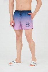 Pantaloni scurți de înot pentru bărbați cu un gradient albastru marin și roz.