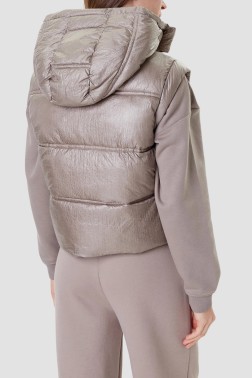 Vestă căptușită bej pentru femei, de la Guess. În imagine este produsul în mărimea: M Dimensiunile produsului în mărimea M: lățime sub brațe: 57 cm, lungime totală: 52 cm.