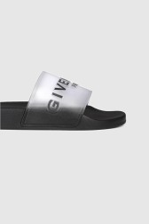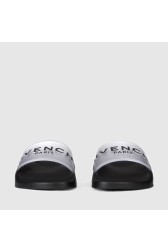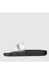 Flip-flops transparenți pentru femei cu logo negru GIVENCHY Paris. Talpă neagră.