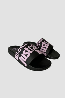 JUST CAVALLI Flip-flops negri cu logo violet Fondo Pool
