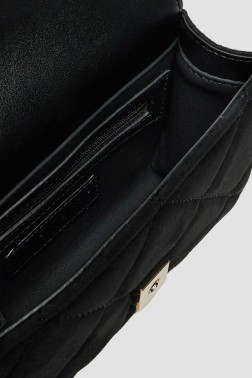 Geantă neagră Charlotte Flap pentru femei de la Valentino By Mario Valentino. Fabricată din piele de căprioară ecologică, cu închidere prin clic. Un buzunar interior. Are o curea nereglabilă care poate fi purtată în două moduri. Vine cu o pungă de praf.