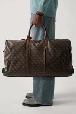 GUESS Geantă de voiaj dublă Pisa cu logo pentru bărbați, maro