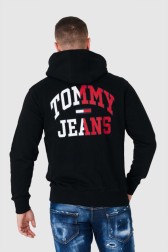 Hanorac pentru bărbați TOMMY JEANS descheiat, negru, cu glugă. Logo mare pe spate. Două buzunare pe părțile laterale.