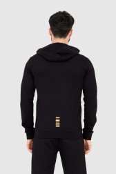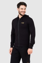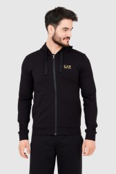 EA7 Hanorac negru cu glugă pentru bărbați, cu logo auriu