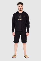 Hanorac negru cu fermoar pentru bărbați, cu logo mic auriu.