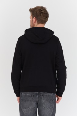 Hanorac negru cu glugă pentru bărbați, fără nasturi, de la Armani Exchange.