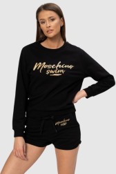 Hanorac din bumbac pentru femei MOSCHINO SWIM negru. Logo auriu aplicat pe piept. Decolteu rotund, canelat. Partea de jos și mânecile cu manșete canelate.