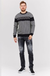 Hanorac bărbătesc din bumbac în alb și negru cu monograma BALMAIN. Decolteu rotund, tiv și mâneci finisate cu un tiv costeliv.