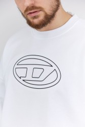 Hanorac DIESEL pentru bărbați, alb. Logo imprimat în relief pe față. Partea de jos și mânecile sunt finisate cu tiv canelat.