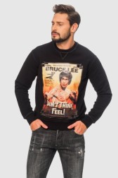 Hanorac Dsquared2 din bumbac de culoare neagră. Imprimeu mare cu Bruce Lee pe față. Decolteu rotund, canelat. Partea de jos și mânecile sunt finisate cu manșete canelate.