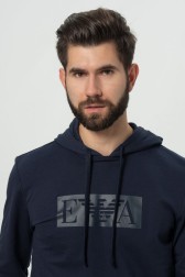 Hanorac EMPORIO ARMANI UNDERWEAR albastru marin pentru bărbați, cu glugă și logo. Partea de jos și mânecile sunt finisate cu manșete cu nervuri.