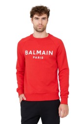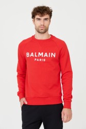 Sweatshirt roșu cu logo imprimat pentru bărbați de la BALMAIN.