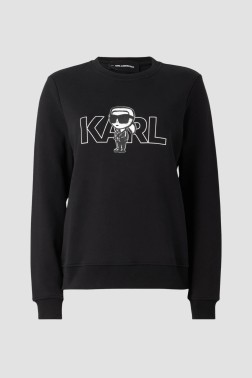 Hanorac negru Karl Lagerfeld realizat din bumbac moale și confortabil. Dispune de un imprimeu pe partea din față cu personajul semnăturii designerului și logo-ul KARL. Croiala clasică cu manșete cu nervuri și decolteu rotund garantează confort și un aspect versatil, modern.