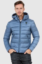 BLAUER Geacă de puf cu glugă pentru bărbați, albastră