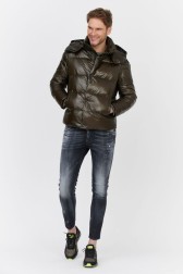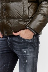 Jachetă de bărbați EMPORIO ARMANI în verde închis. Două buzunare cu fermoar în față. În interior, două buzunare cu fermoar. Jachetă încheiată cu fermoar bidirecțional și butoni cu logo. Glugă detașabilă cu cordon cu capete metalice. Mâneci finisate cu manșete costelate cu logo. Bretele de marcă în interior.