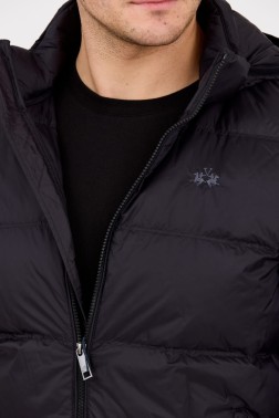 Jacheta neagră Outerwear Basic Nylon de la La Martina este alegerea perfectă pentru bărbații care apreciază eleganța, precum și confortul. Cusută din poliamidă de înaltă calitate, aceasta oferă o protecție excelentă împotriva frigului datorită umpluturii sale naturale cu 80% puf de rață și 20% pană. Modelul are o închidere cu fermoar, mâneci lungi și o glugă practică, făcându-l atât elegant, cât și funcțional. Ornamentele matlasate adaugă o notă modernă.