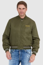 Jachetă bomber verde KENZO pentru bărbați cu logo galben