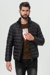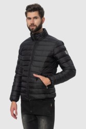 EMPORIO ARMANI Jachetă neagră din material tehnic pentru bărbați, sticlă extra lucioasă