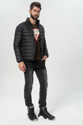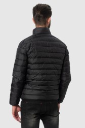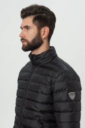 EA7 EMPORIO ARMANI jachetă matlasată în jos pentru bărbați, de culoare neagră. Dispunând de o glugă subțire rulată la guler, sub un fermoar ascuns. Jacheta se închide cu un fermoar bidirecțional. Patch logo argintiu pe umărul stâng. Două buzunare cu fermoar pe față. Buzunar suplimentar cu fermoar în interior. Jachetă finisată cu elastic cu nervuri înguste la talie și manșete.
