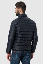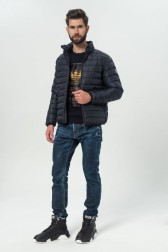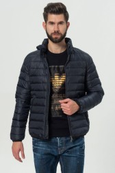 Jachetă matlasată EA7 EMPORIO ARMANI pentru bărbați în albastru marin. Dispunând de o glugă subțire rulată la guler, sub un fermoar ascuns. Jacheta este închisă cu un fermoar bidirecțional. Patch logo argintiu pe umărul stâng. Două buzunare cu fermoar pe față. Buzunar suplimentar cu fermoar în interior. Jachetă finisată cu elastic cu nervuri înguste la talie și manșete.