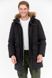 AERONAUTICA MILITARE Parka neagră pentru bărbați cu blană de raton