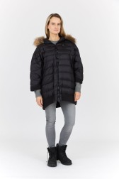 HETREGO Jachetă neagră lungă pentru femei Hanna cu vulpe