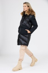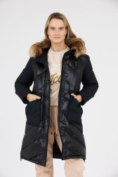 HETREGO Jachetă de damă neagră Leonie matlasată cu glugă detașată