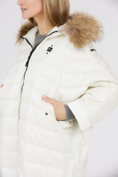 BLAUER Palton din puf ecru pentru femei cu blană de raton