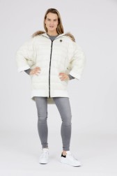 HETREGO Geacă de puf pentru femei Holly Ecru cu glugă detașabilă