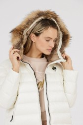 BLAUER Geacă de puf pentru femei, ecru, cu blană de raton detașabilă