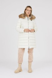HETREGO Geacă de puf pentru femei Holly Ecru cu glugă detașabilă
