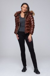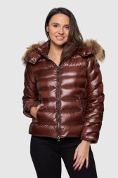 BLAUER Jachetă din puf pentru femei, maro, cu blană de raton detașabilă