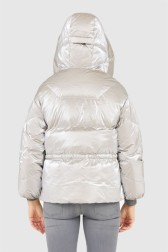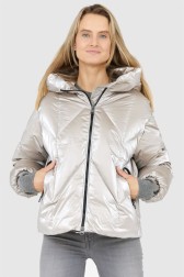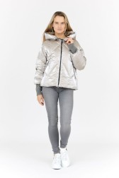 HETREGO Jachetă argintie pentru femei cu glugă Muriel