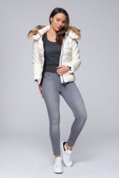 BLAUER Jachetă de puf ecru pentru femei cu glugă Claudia fashion jachetă de puf cu glugă