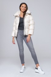 BLAUER Jachetă de puf ecru pentru femei cu glugă Claudia fashion jachetă de puf cu glugă