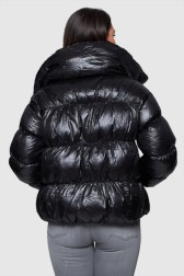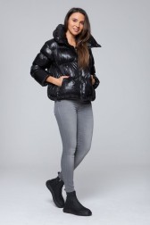 HETREGO Jachetă neagră lucioasă pentru femei cu glugă Muriel