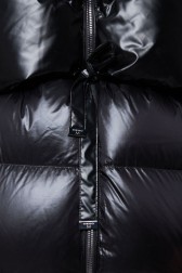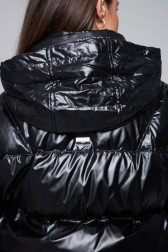 HETREGO Jachetă neagră lucioasă pentru femei cu glugă Muriel