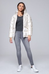 BLAUER Jachetă de puf ecru pentru femei cu glugă Claudia fashion jachetă de puf cu glugă