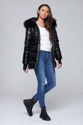 - Z wiązanym paskiem, odpinany kaptur, odpinane futro, kryty ściągacz na dole, wszyte mankiety