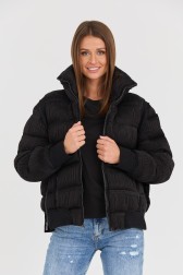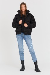DIEGO M Jachetă neagră din puf cu mâneci detașabile