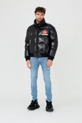 DSQUARED2 Jachetă neagră cu puf lucios Caban pentru bărbați