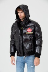 Jachetă neagră Glossy Puff Kaban pentru bărbați de la DSQUARED2.