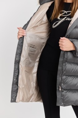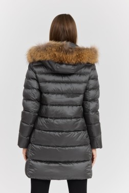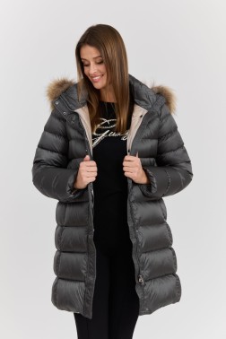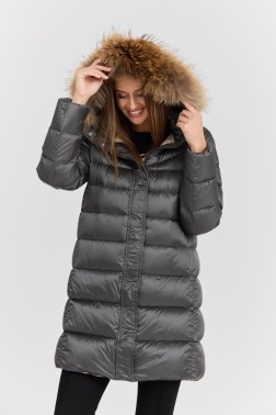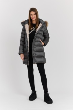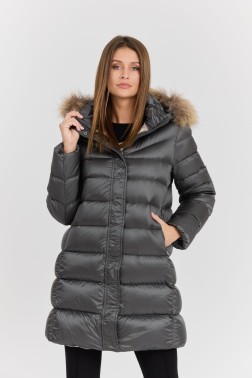 Jacheta gri Leonie Quilted Woman cu glugă detașabilă de la Hetrego este alegerea perfectă pentru zilele mai reci. Fabricată din poliamidă de înaltă calitate, cu o umplutură naturală de 90% puf și 10% pene, oferă confort și căldură. Lungimea sa la jumătatea coapsei și mânecile lungi o fac ideală pentru stilul de zi cu zi. Fermoarul permite îmbrăcarea și scoaterea ușoară, în timp ce gluga cu blană de raton adaugă o notă elegantă.