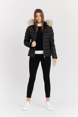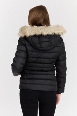 Jacheta neagră pentru femei de la Tommy Jeans este alegerea perfectă pentru zilele mai reci. Fabricată din poliester de înaltă calitate, jacheta oferă confort și căldură datorită umpluturii sintetice. Are mâneci lungi și o glugă practică, ceea ce o face nu numai elegantă, ci și funcțională. Închiderea cu fermoar asigură o fixare ușoară, în timp ce designul minimalist fără modele o face ușor de asortat cu diferite stiluri. Jacheta are blană artificială pentru un plus de eleganță și stil. Ideală pentru femeile care apreciază moda și confortul.
