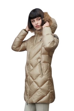 HETREGO Jachetă lungă de femei Hygiea bej cu foxing