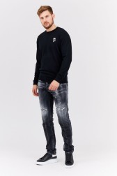 Pulover bărbătesc KARL LAGERFELD de culoare neagră cu logo brodat. Confecționată din lână merinos plăcută la atingere. Decolteu rotund, tiv și mâneci finisate cu tiv canelat.