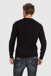 LA MARTINA Pulover cu decolteu în V din lână neagră pentru bărbați