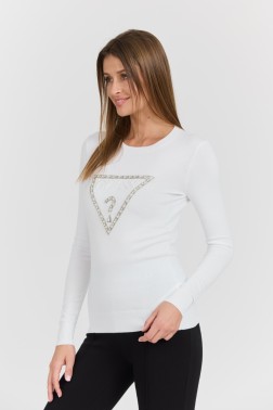 GUESS Pulover alb pentru femei Rylie Triangle cu logo mare