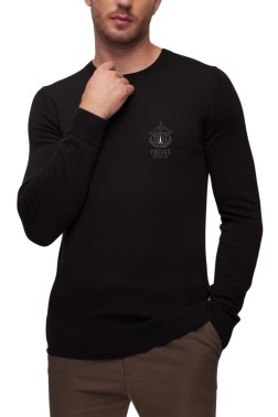 Pulover negru pentru bărbați, cu gât rotund, de la Aeronautica Militare.